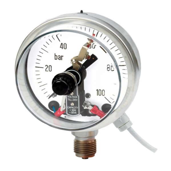 El manómetro de contacto eléctrico Indumed®. Los contactos de alarma son los accesorios con contactos móviles en el aire, que abren o cierran circuitos eléctricos dependiendo de la posición de la aguja indicadora. De esta manera se convierten en interruptores de presión y temperatura: la solución óptima y segura para automatizar cualquier tipo de equipo.