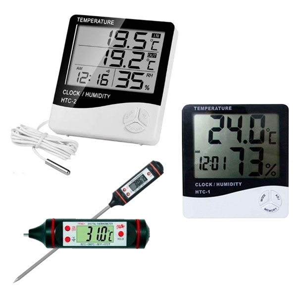 Varios Termómetros Indumed®. Termómetro digital de pinchar - Higrotermómetro sin Sonda - Higrotermómetro con Sonda. Se utilizan para la medición de la temperatura digital, compresores y hornos.
